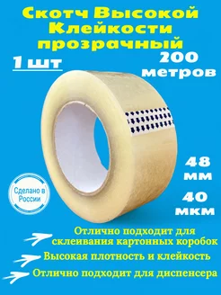 Скотч широкий прозрачный 200 метров 1 штука 48 мм 40 мкм
