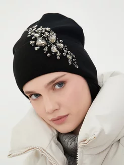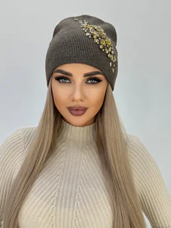 Шапка вязаная с камнями на флисе