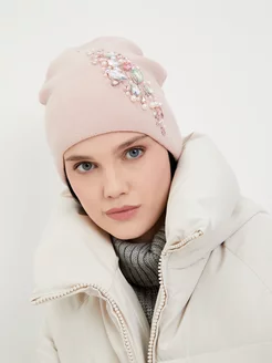 Шапка розовая с камнями на флисе