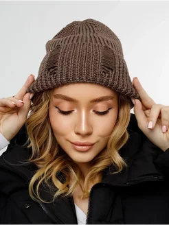 Шапка женская осенняя рваная бини с отворотом