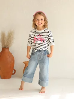 Джинсы детские широкие на резинке палаццо
