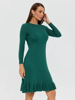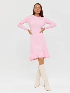Платье лапша трикотажное в рубчик с воланом