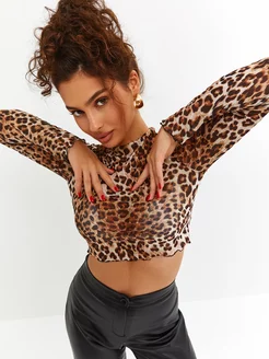 Лонгслив укороченный кроп топ сетка