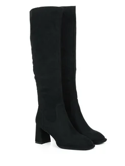 Сапоги высокие демисезонные на каблуке с квадратным носком
