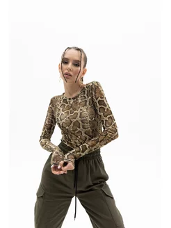 Лонгслив женский сетка змея блузка водолазка прозрачная