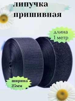 Липучка пришивная чёрная 25мм для одежды и обуви