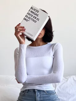 Лонгслив облегающий с длинным рукавом полупрозрачный хлопок