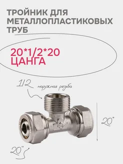 Тройник для металлопластиковых труб 20-1 2 наружная-20