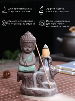 Подставка для благовоний "Будда в синем" стелющийся дым