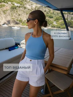 Топ вязаный халтер с открытой спиной