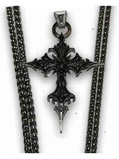 Кулон крест готический со скелетом на цепочке стиль Y2K