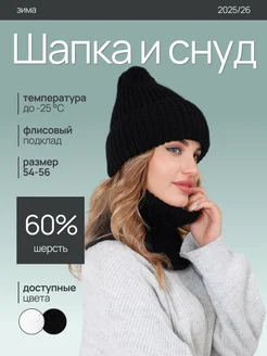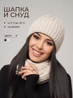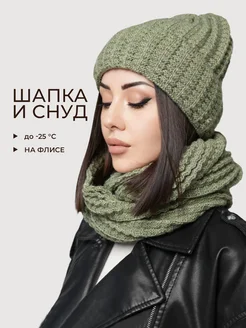 Зимняя вязаная шапка на флисе, со снудом комплект