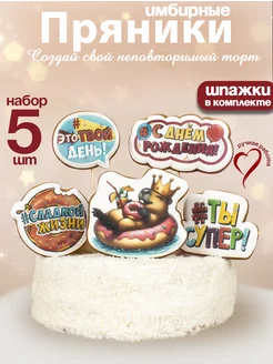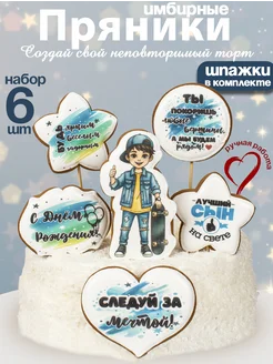 Пряники на торт имбирные натуральные с рисунками 6 штук