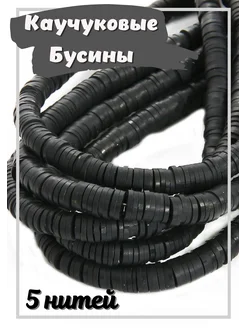 Каучуковые бусины, Черные 6 мм 5 нитей
