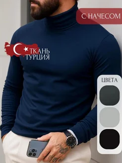 Водолазка теплая с начесом синяя с горлом ткань Турция