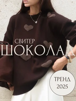 Свитер оверсайз вязаный с сердечками теплый сливочное масло