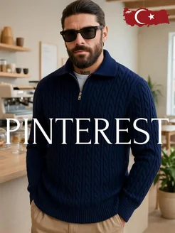 Свитер теплый поло на молнии джемпер Old money пряжа Турция