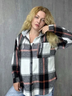 Рубашка байковая в клетку оверсайз с капюшоном