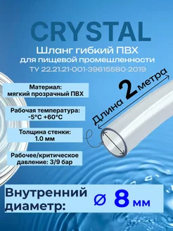 Шланг ПВХ пищевой 8мм (2 метра)