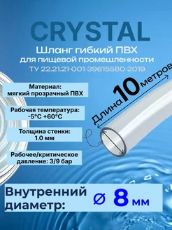 Шланг ПВХ пищевой 8мм (10 метров)