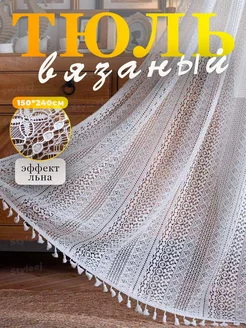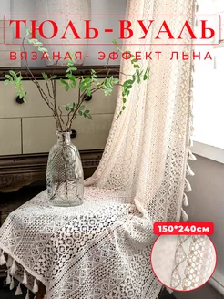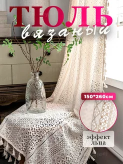 Тюль-штора 150х260 см кружевная вязаная Бохо под лен