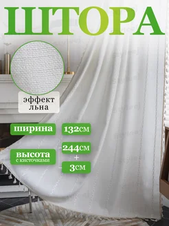 Штора длинная вязаная 132х244 под лен хлопок белый канвас