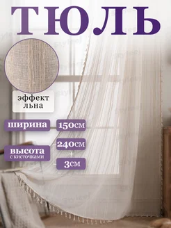 Тюль вуаль - штора 150х240 под лен бежевый хлопок