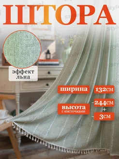 Штора длинная вязаная 132х244 под лен хлопок зеленый канвас