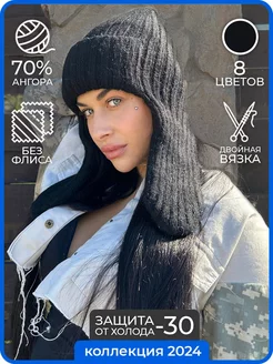 Шапка ушанка зимняя вязаная ангора