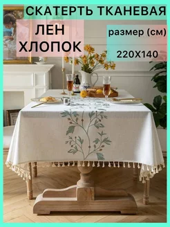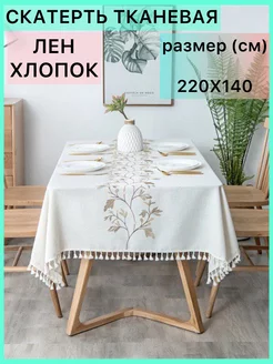 Скатерть тканевая льняная прямоугольная бахромой 220 на 140