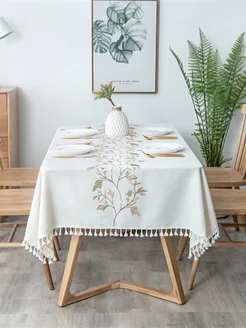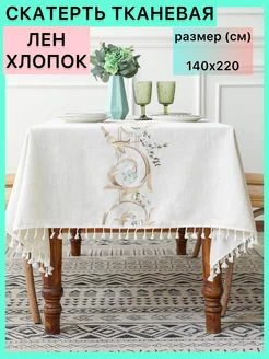 Скатерть тканевая лен праздничная с вышивкой 220 на 140