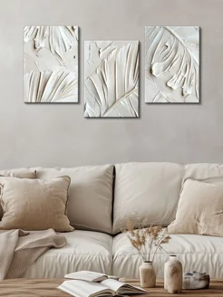 Набор из 3х картин на стену Белые листья