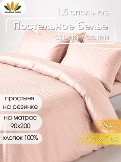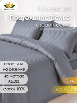 Постельное белье 1,5 односпальное страйп-сатин на резинке