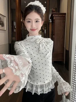 Топ кружевной y2k с длинным рукавом в стиле coquette