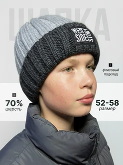Шапка зимняя для подростка с флисом вязаная с отворотом