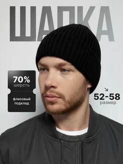 Шапка зимняя бини с флисом вязаная с отворотом
