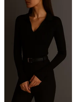 Лонгслив поло облегающий в рубчик с длинным рукавом лапша
