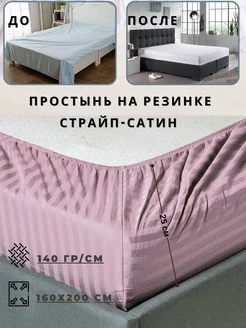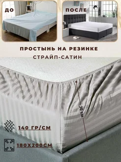 Простынь на резинке 180х200 натяжная хлопок сатин страйп