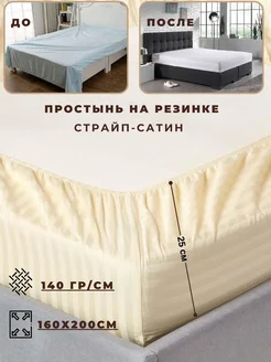 Простынь на резинке 160х200 натяжная хлопок сатин