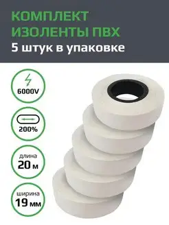 Изолента ПВХ белая набор из 5 штук 0.15х19мм