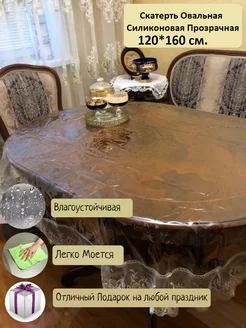 Скатерть силиконовая овальная прозрачная 120*160 см. бахрома