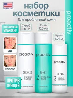 Косметический набор против прыщей - скраб, тоник и гель