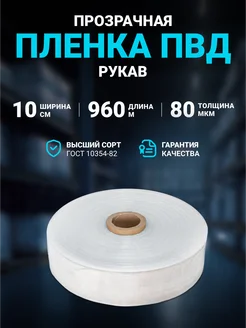 Плёнка упаковочная ПВД рукав прозрачный 10 см 80 мкм, 960 м