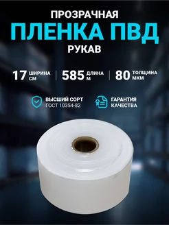Плёнка упаковочная ПВД рукав прозрачный 17 см 80 мкм, 585 м