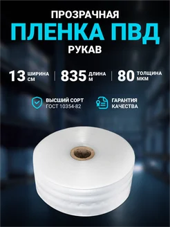 Плёнка упаковочная ПВД рукав прозрачный 13 см 80 мкм, 835 м