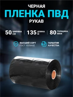 Плёнка упаковочная ПВД рукав черная 50 см 80 мкм, 135 м