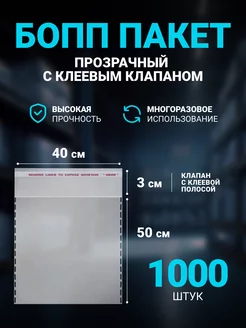 Пакет БОПП с клеевым клапаном 40x50+3 см 25 мкм, 1000 шт