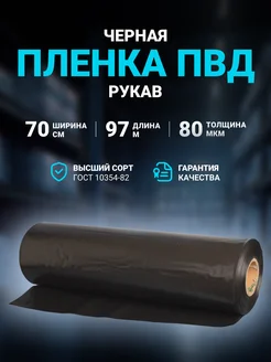 Плёнка упаковочная ПВД рукав черная 70 см 80 мкм, 97 м
