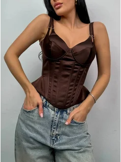 Корсет вечерний коричневый с чашками с лямками на шнуровке