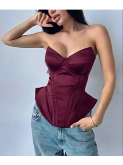 Корсет вечерний бордовый с чашками на шнуровке атласный